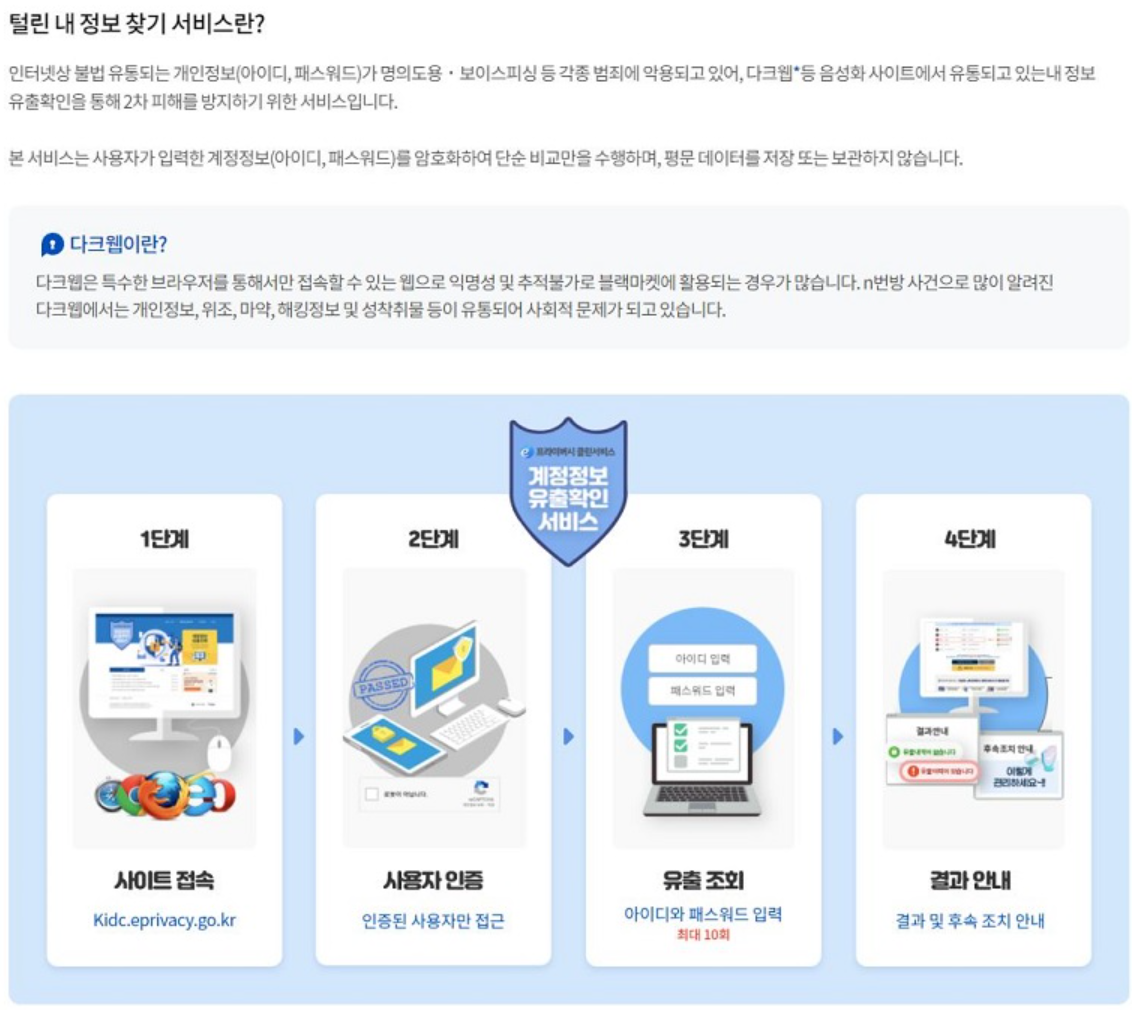 마지막으로, '털린 내 정보 찾기' 서비스입니다.