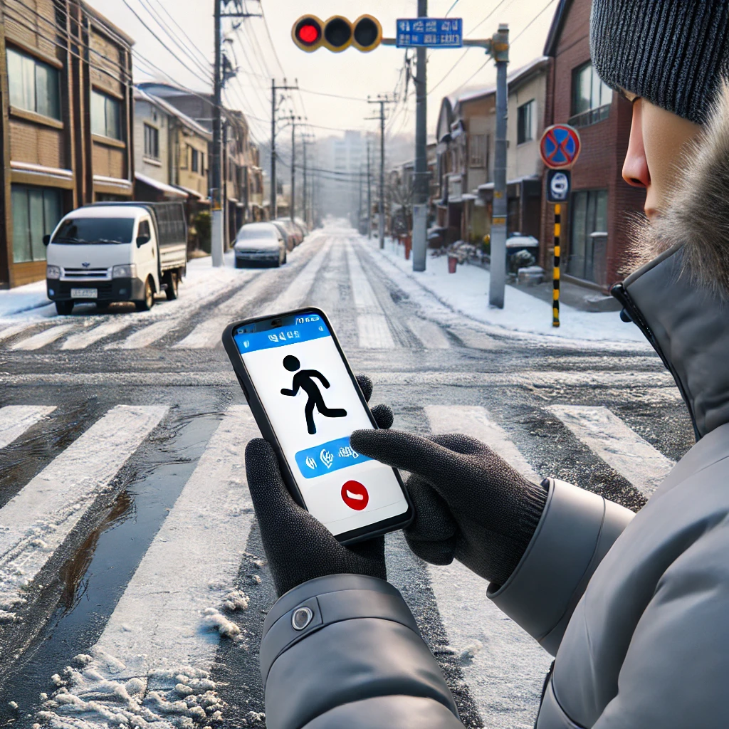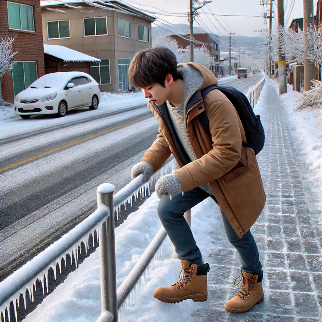 - 결빙된 보행로: 얼음이 형성되어 보행자의 넘어짐 위험이 높은 상황.