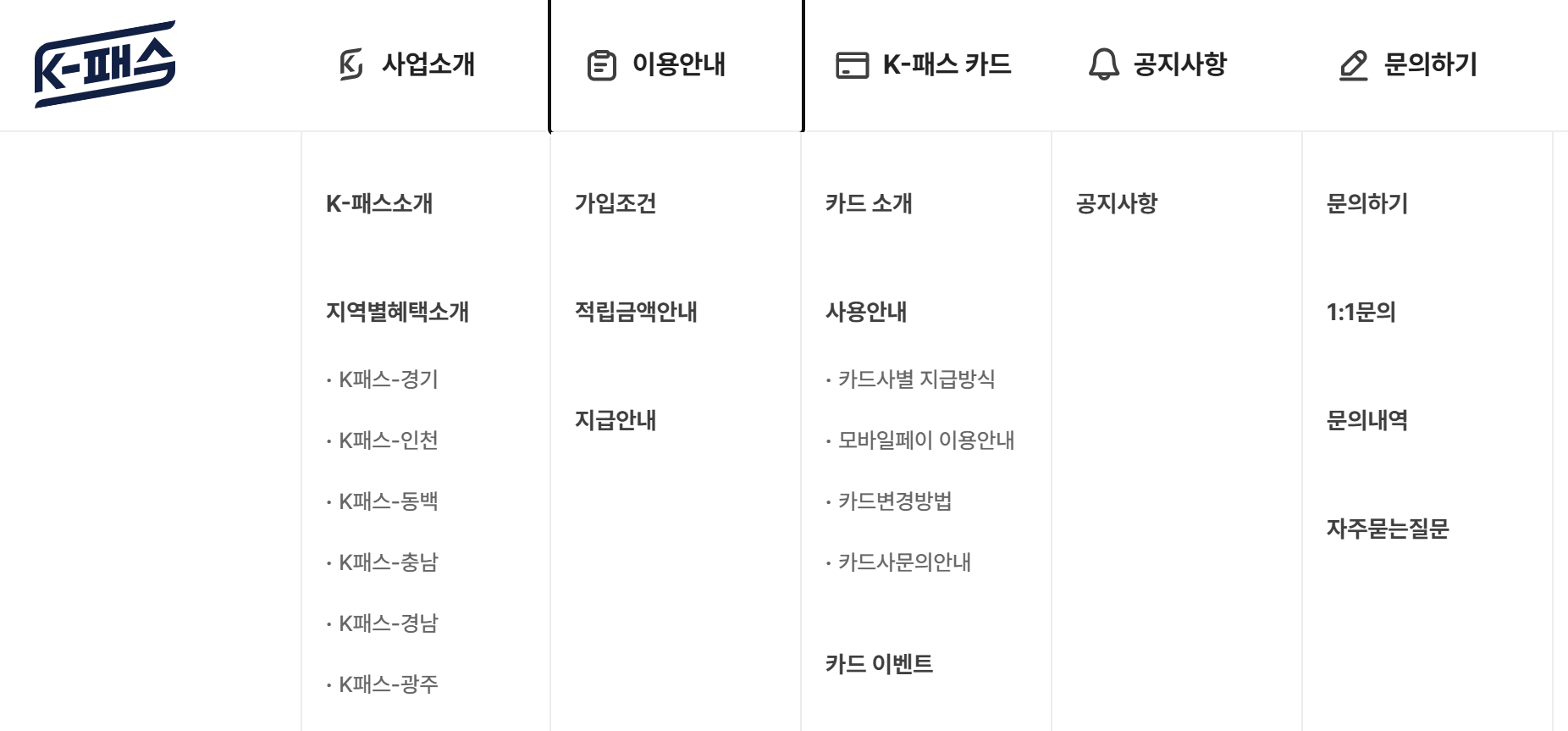 - 국내 10개 카드사가 발급하는 K-패스 카드를 사용하여 대중교통비 결제.