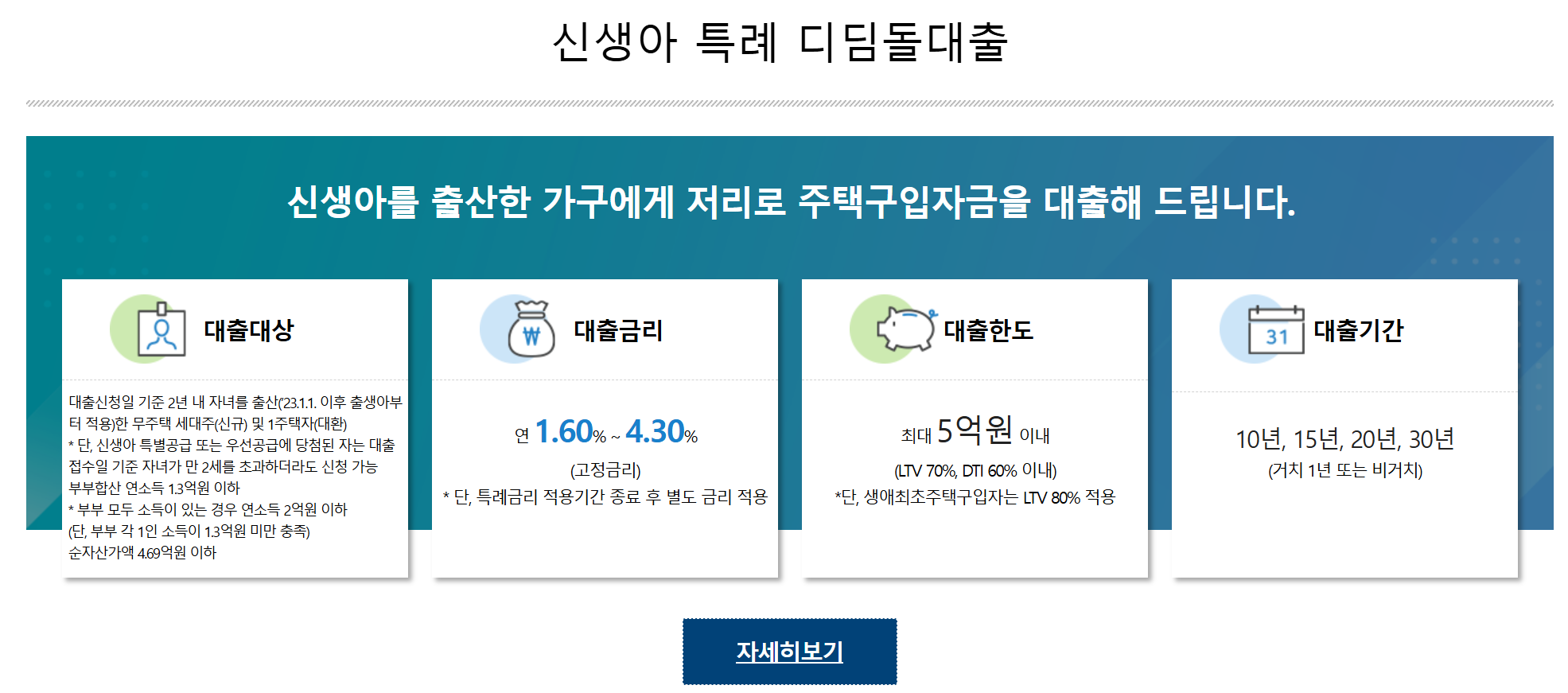 - 자녀가 없는 맞벌이 부부도 대출 대상인가요? 아니요. 대출 접수일 기준 최근 2년 내 출산한 가구만 해당됩니다.