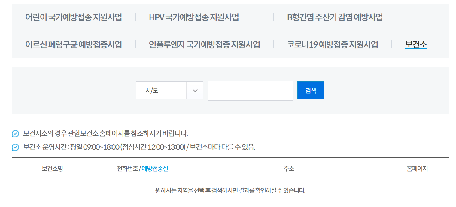 - 위치 확인: 질병관리청 예방접종 도우미 사이트에서 가까운 보건소를 검색할 수 있습니다.