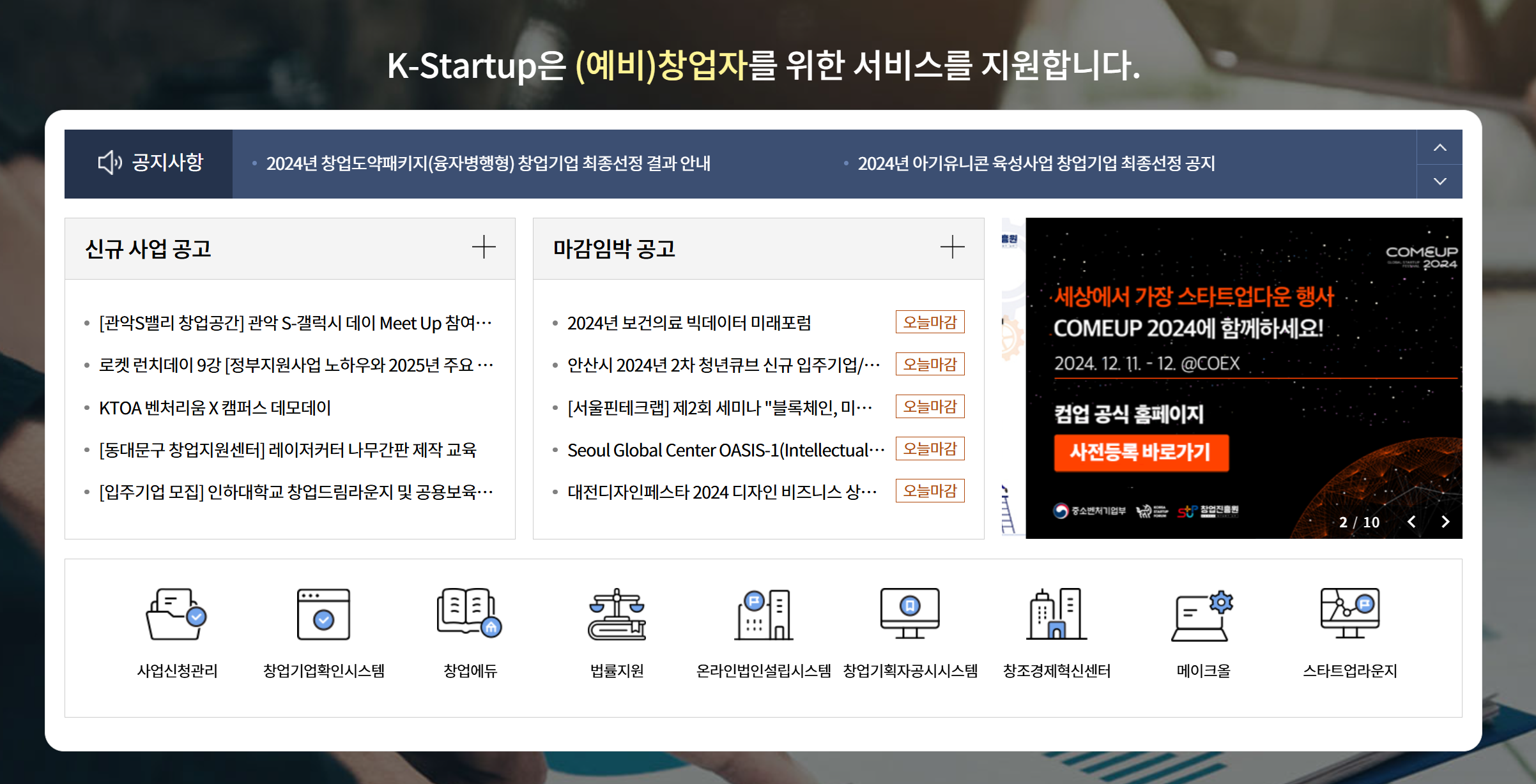 - 모집 공고 확인: K-스타트업 홈페이지에서 모집 공고를 확인합니다.