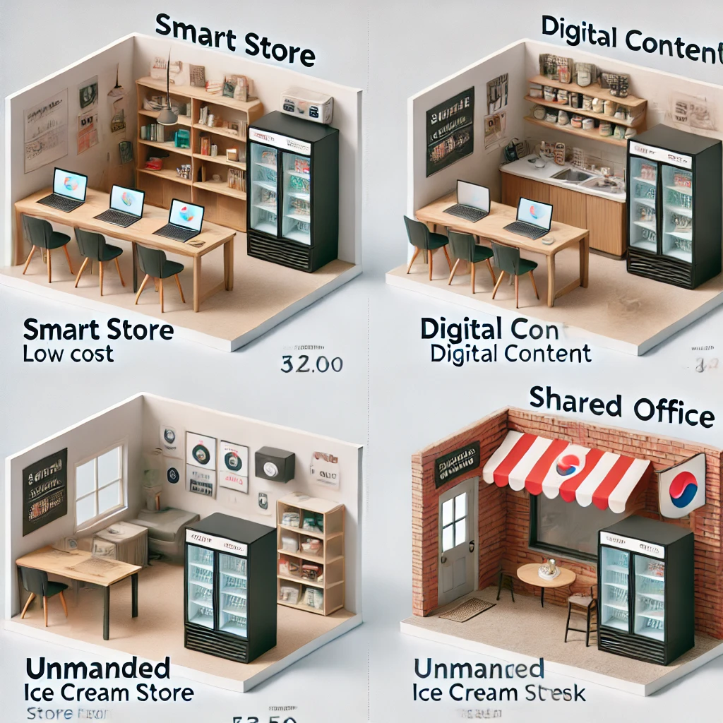 | 무인 아이스크림점 | 1,000만 원대 | ★★★☆☆ | 실물 운영 경험 쌓고 싶은 사람 |