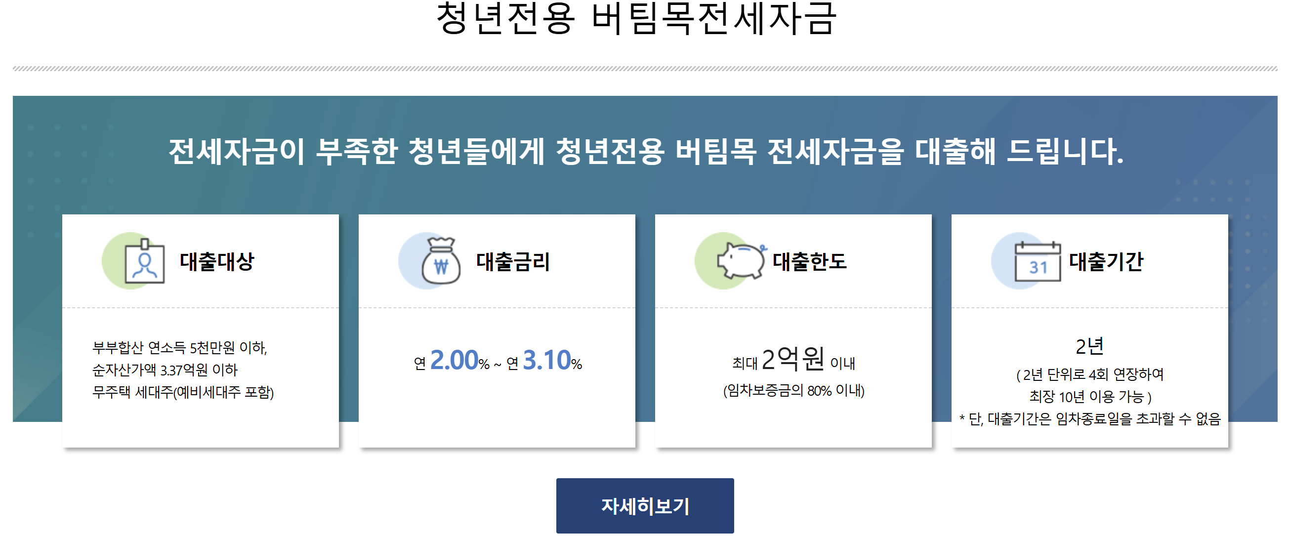 청년전용 버팀목 전세자금 대출을 활용하여 보다 안정적인 주거 환경을 조성하고, 미래를 계획하는 데 도움이 되길 바랍니다.