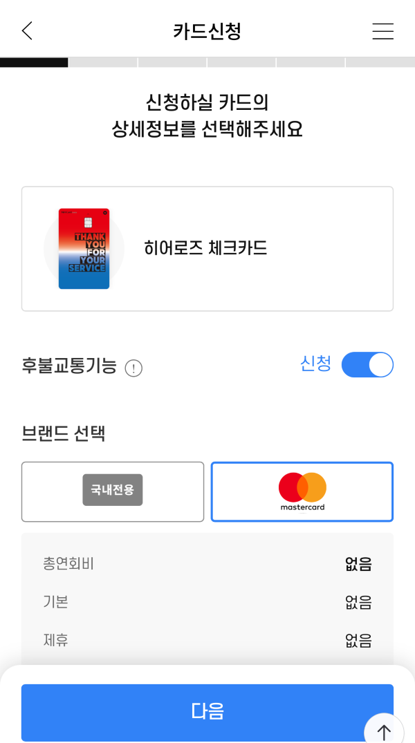 히어로즈 카드는 연회비가 없는 체크카드로 발급되기 때문에, 제대군인들에게 경제적인 부담을 최소화하면서도 다양한 혜택을 누릴 수 있게 해줍니다. 연회비 없이도 제공되는 혜택들이 풍부하여, 이 카드는 특히 젊은 제대군인들이 별도의 비용 없이 다양한 혜택을 누리며 자기 계발과 생활 전반에 걸쳐 유용하게 사용할 수 있습니다. 연회비 부담이 없는 체크카드임에도 불구하고, 이 카드는 제대군인들에게 실질적인 지원을 제공하며, 그들의 경제적인 상황을 배려한 맞춤형 카드라 할 수 있습니다.