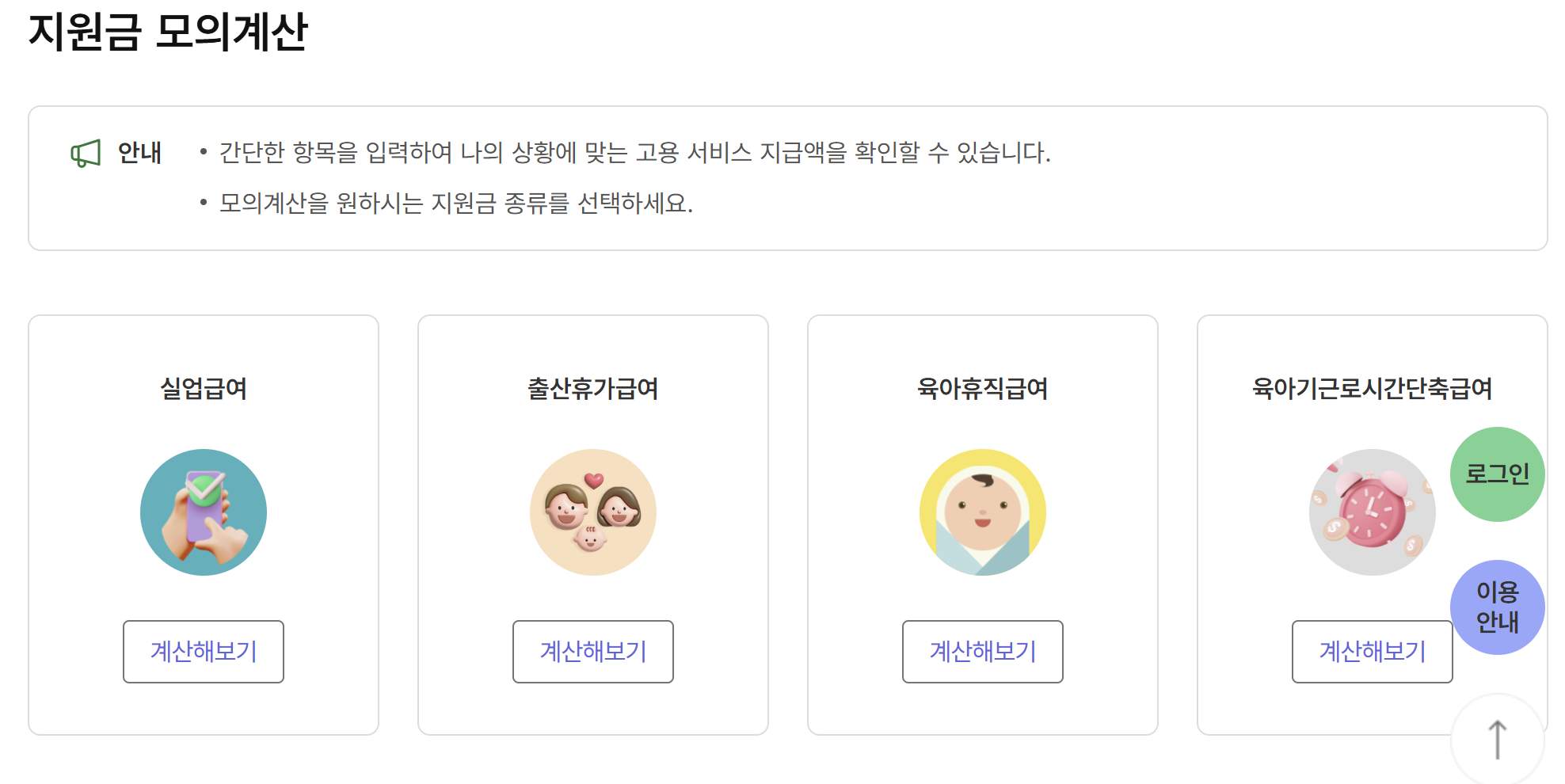 고용24 누리집에서는 출산휴가 및 육아휴직 급여를 미리 계산해볼 수 있는 모의계산 서비스를 제공합니다.
