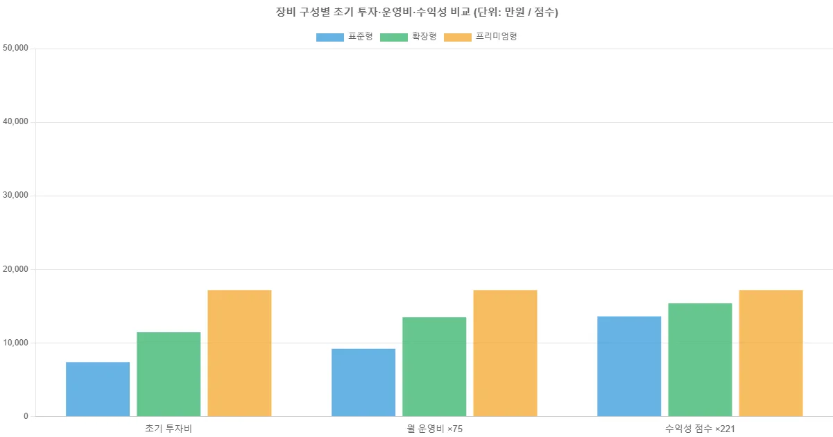 - 프리미엄형은 초기 투자와 월 운영비가 높지만 수익성 점수가 가장 높음