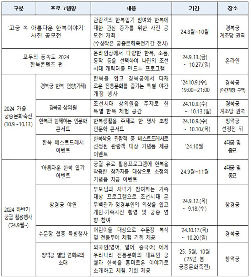 여러 궁궐 활용 사업에 한복 체험 행사가 추가될 예정입니다.