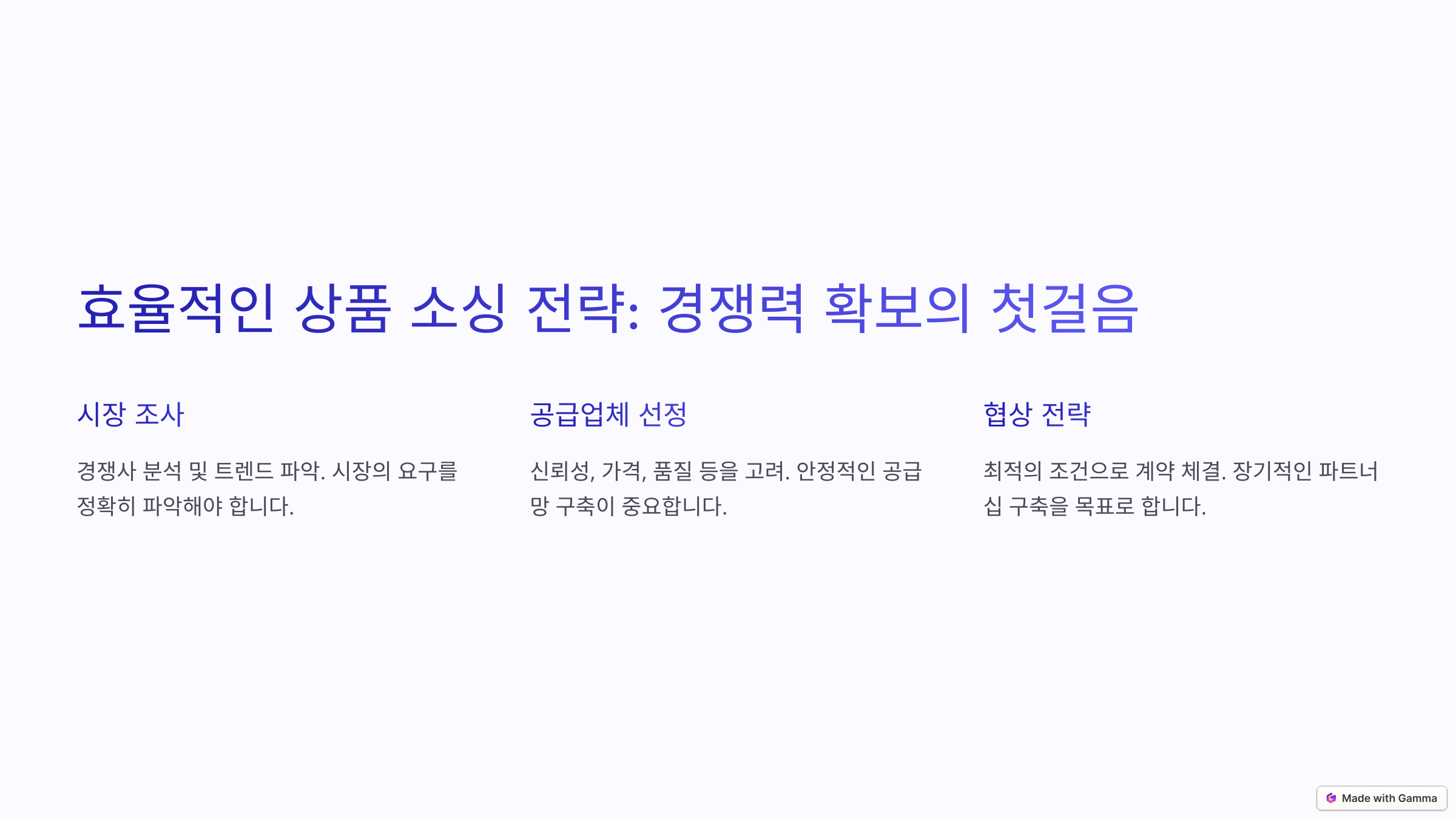 상품을 선택할 때 품질과 가격, 공급의 안정성을 고려하면, 소비자 만족도를 높이고 비즈니스 성장을 이끌 수 있어요.