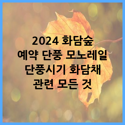 2024 화담숲 예약 단풍 모노레일 단풍시기 화담채 관련 모든 것