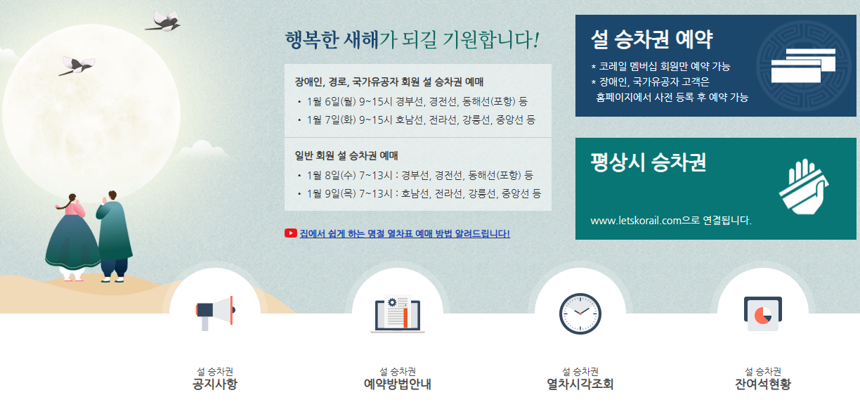 - 판매 채널: 코레일 명절 승차권 전용 홈페이지, 코레일톡 앱, 전국 철도역 창구