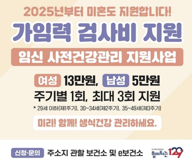 2025년 1월 1일부터 미혼 남녀도 가임력 검사비 지원 확대, 모든 20~49세 대상