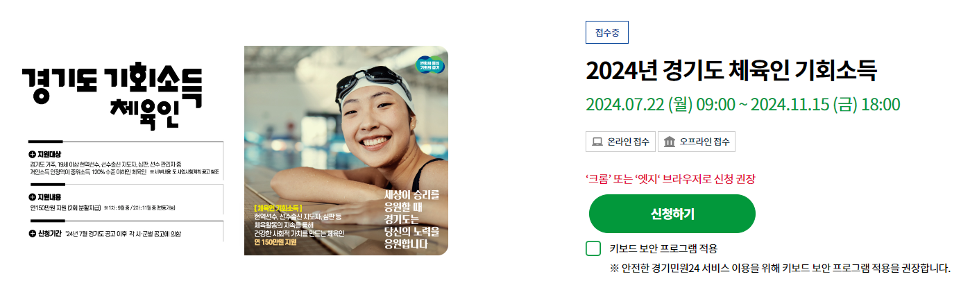 24년 경기도 체육인 기회소득 신청 방법, 혜택 지원 안내