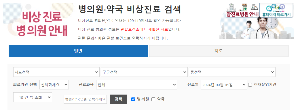 24년 명절 추석 연휴 응급 상황, 문 여는 병원 약국 확인 방법