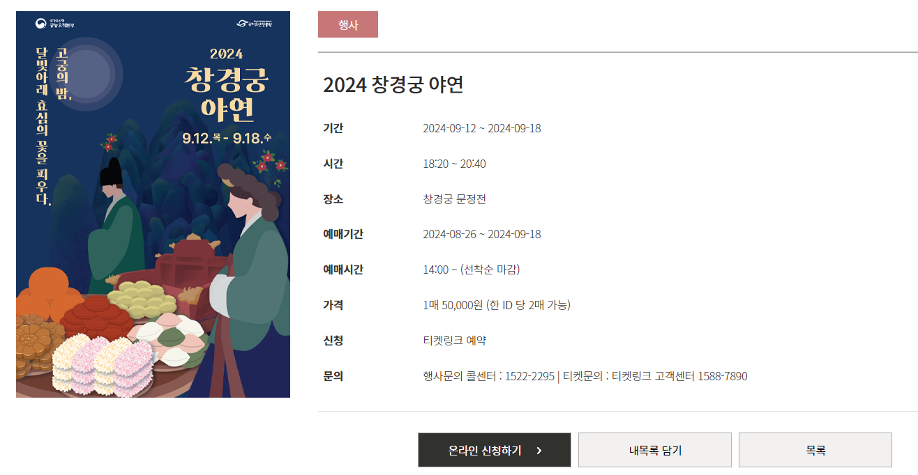 24년 창경궁 추석 특별 이벤트 - '창경궁 야연' 티켓 예매