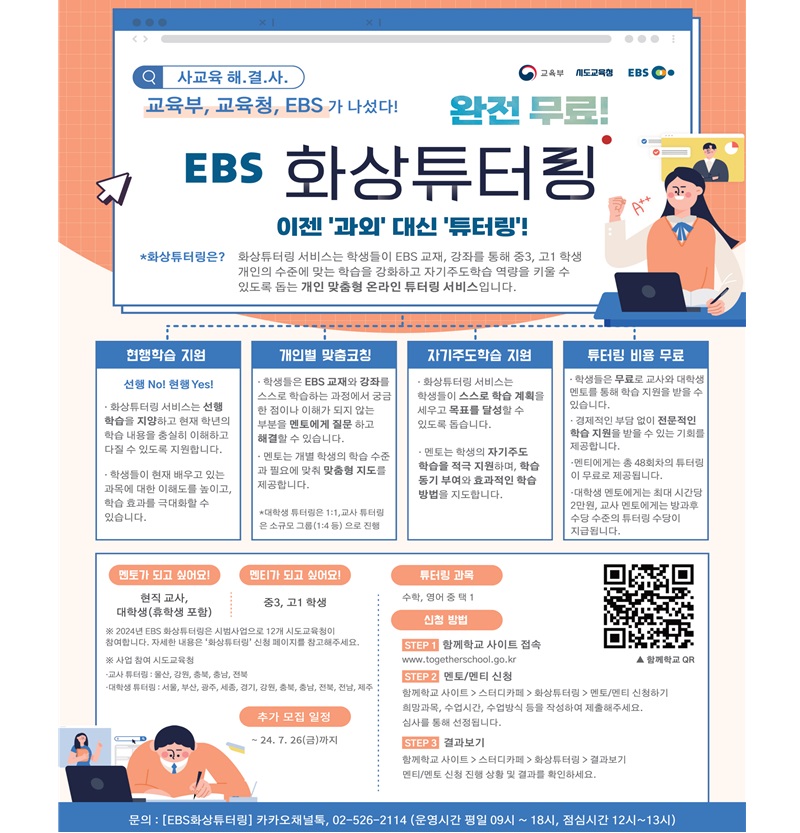 7월 1일부터 시작하는 무료 화상 튜터링 서비스는